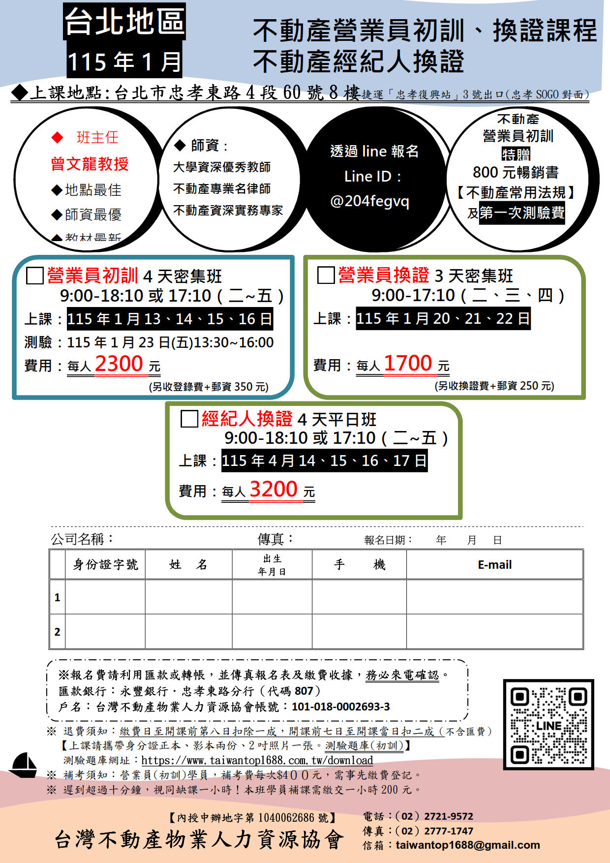 費用 : 學費每人2300元