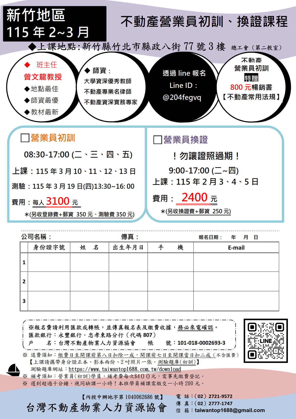 上課地點: 新竹縣竹北市縣政八街77號3樓 《總工會‧第二教室》