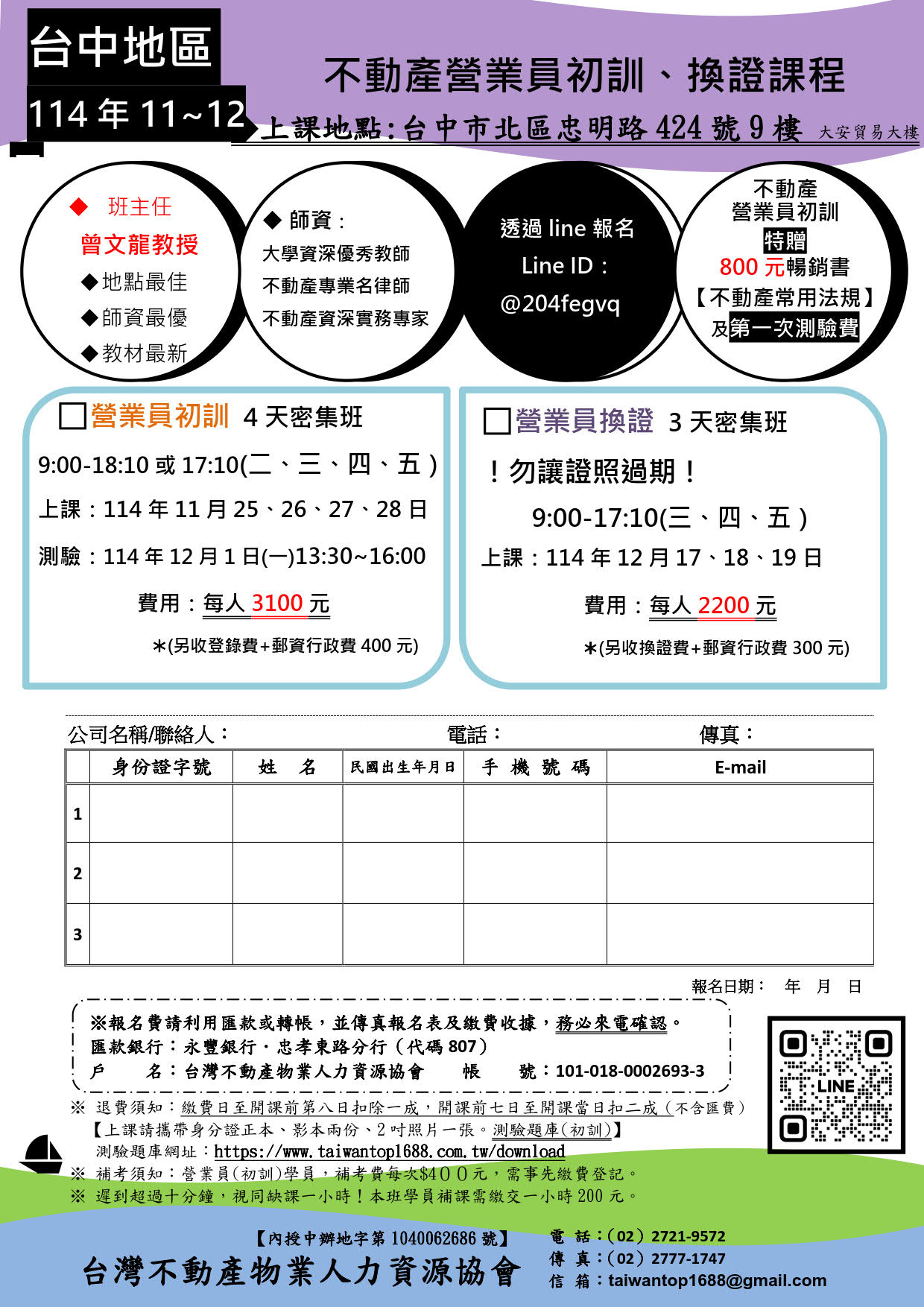 【台中區】不動產營業員《新訓》114.11.25~28◆12/1測驗 ☆招生中☆