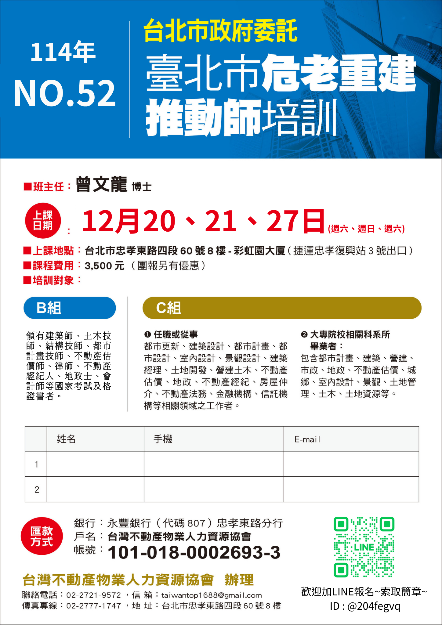 都市更新、建築設計、都市計畫、都市設計、室內設計、景觀設計、建築經理、土地開發、營建土木、不動產估價、地政、不動產經紀、房屋仲介、不動產法務、金融機構、信託機構等相關領域之工作者。