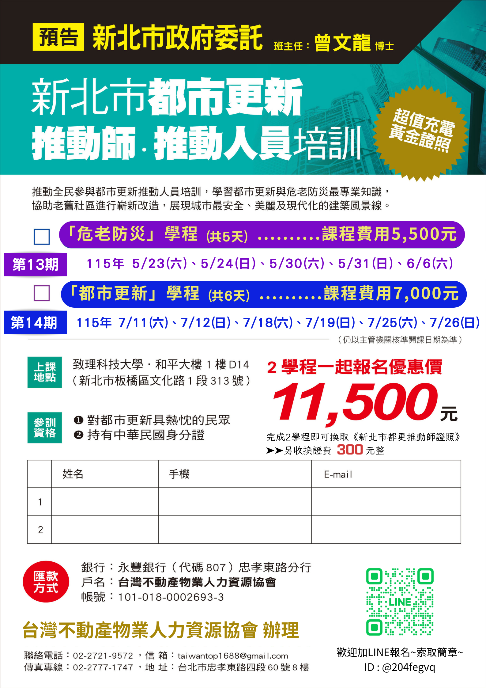 ※《都市更新》《危老防災》2學程一起報名首波優惠價11,500元