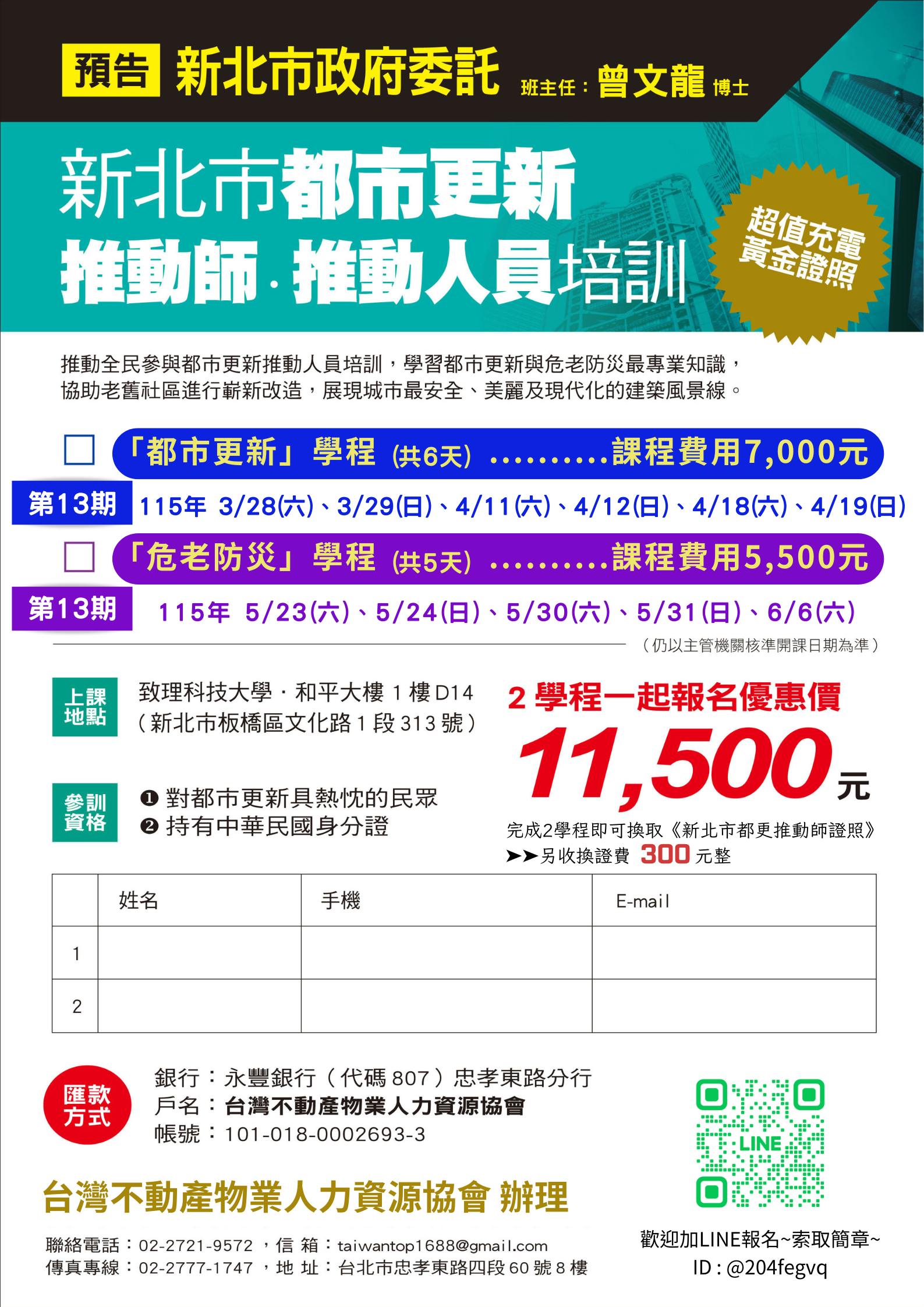 ★NEW~新北市都市更新推動師暨推動人員課程~★