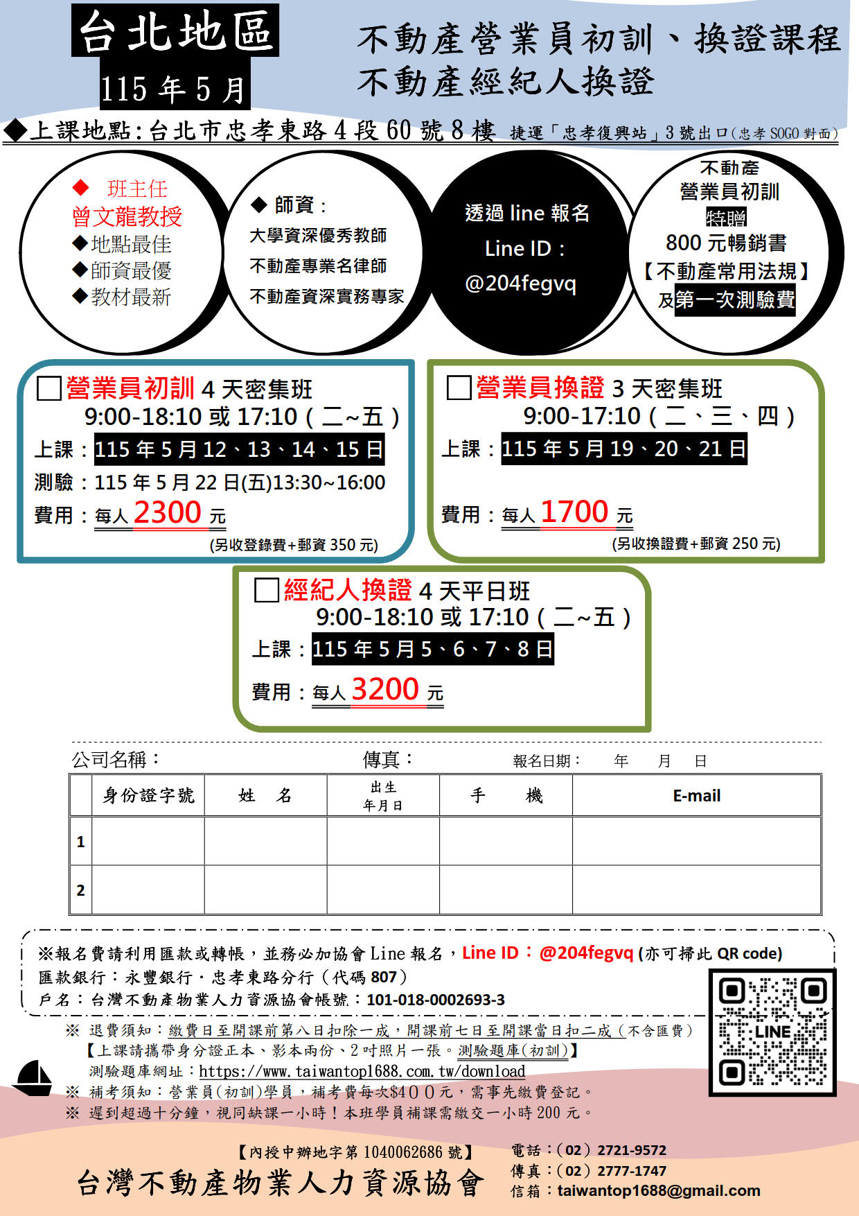 ★ 房仲營業員換證 3天密集班★ (仲介、房屋仲介、代銷 換證班)