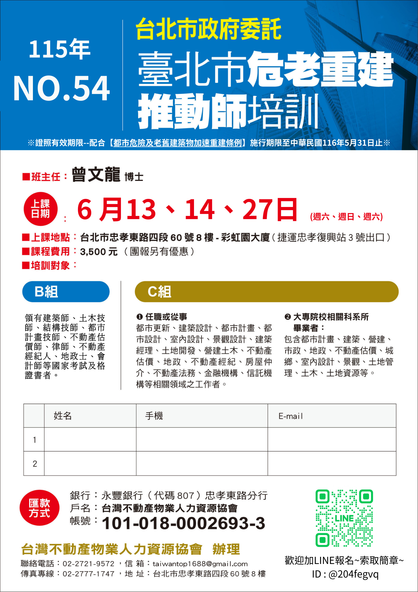回訓✔ 115年6月13、14日 ( (日、六)